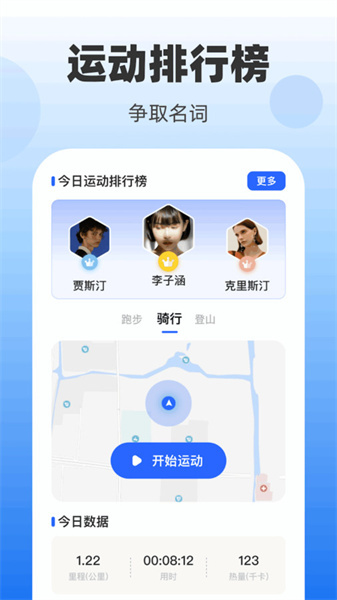 查看训练排行榜的数据,和他人一较高下,激发运动的动力,体验全新的竞争乐趣。