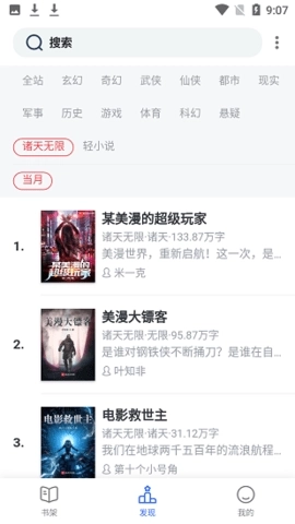 1、在小说分类页面,依据品类即可找到对应的书籍。