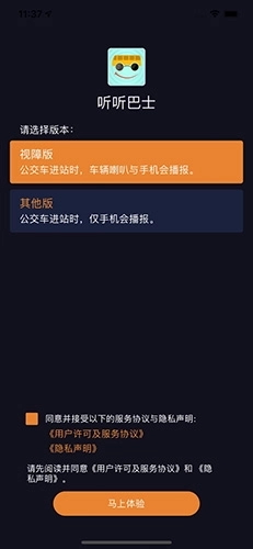 听听巴士是广州华途信息科技有限公司研发的公交导盲助乘软件,专为视障人士设计,帮助他们轻松获取精准导航服务。打开软件后,手机会自动播报到达站名和公交路线;若未听清,只需摇一摇手机,系统便会重新识别信息并再次播放语音。感兴趣的用户不妨体验一下这款实用的软件!