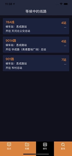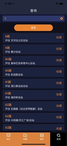 用户可依据自身乘车信息,对线路及开往方向进行个性化收藏,后续使用时只需点击已收藏的线路,即可直接进入乘车页面。