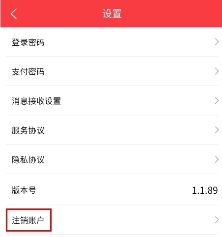 2、在设置页面中点击注销账户按钮;