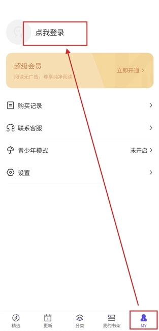 1.如果需要将喜欢的作品添加到书架时,那么需要先进行登录,打开看耽漫画后点击【MY】--【点我登录】