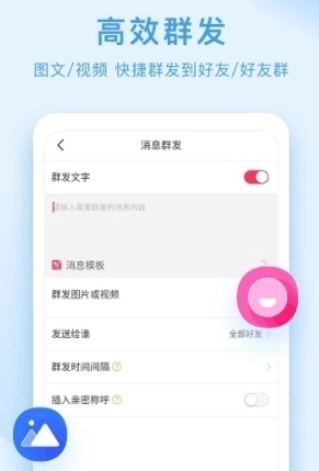 1、群发消息:支持自动向所有好友群发,也能按标签精准群发;可针对选中的好友设置发送,也可对特定好友设置不发送。