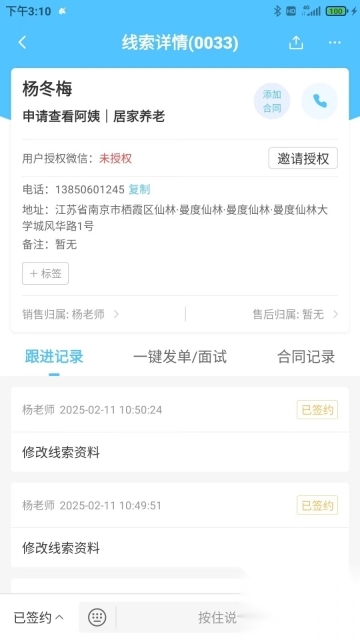 2、客户通过线上平台、电话等渠道完成下单后,订单信息会实时同步至软件系统,工作人员可依据订单具体详情,迅速匹配合适的阿姨与客户进行对接;