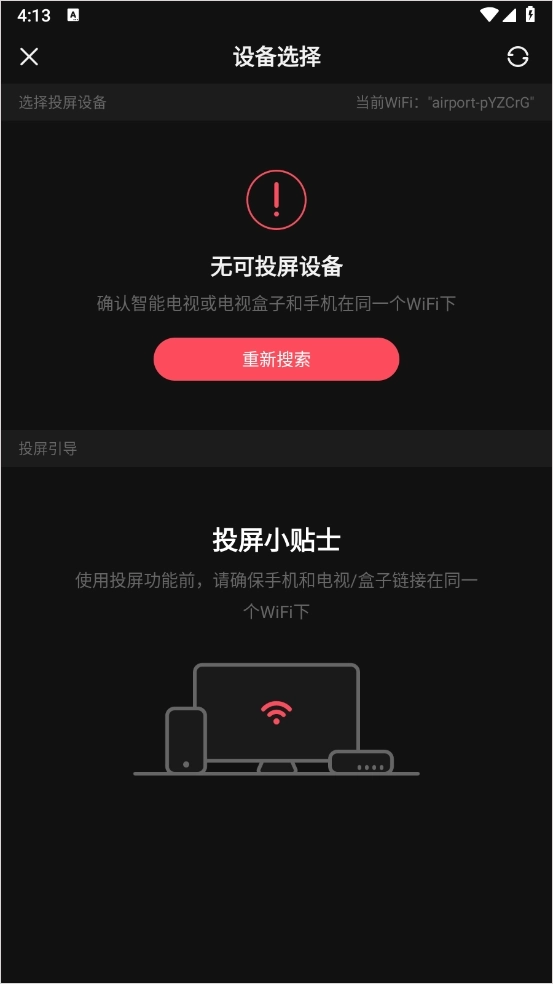 3、然后等待手机搜索到电视的信号,找到信号点击选择就可以进行投屏了,切记电视和手机需要连接在同一wifi下。