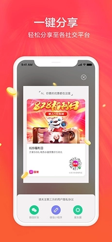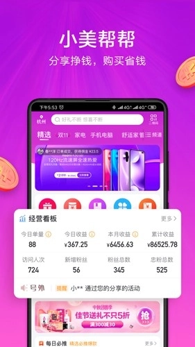 赚钱:自己买东西能省钱,分享出去还能赚钱,把它分享给身边的朋友,就能永久享受购物带来的佣金!
