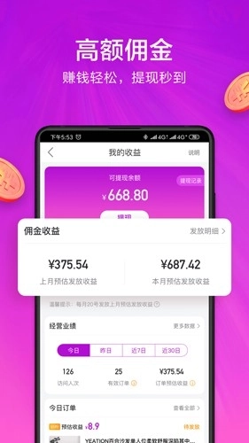 推手无论是分享商品给他人还是自己购买,都能赚取佣金;佣金会在商品成功妥投7个工作日后,于【我的】页面的【累计总收入】栏目中进行查询。