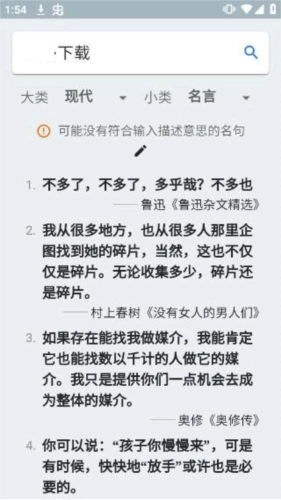 软件里还能查询不少歇后语,用户只需输入前半句,对应的后半句就会显示出来。