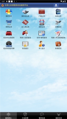 这款软件以方便群众、惠及民众为宗旨,为广大用户提供了丰富的福利服务,主要涵盖群众服务、打击犯罪、警务信息三大板块,具体包括网吧业务办理、出入境业务咨询、消防业务指导、交通违章查询、机动车信息查询、驾驶人信息查询、初学或增驾资格查询、驾驶人考试成绩查询等多项功能。它不仅节省了老百姓办事的时间,让大家无需专程前往相关部门就能解决问题,还帮助工作人员提升了工作效率,堪称一项实现双赢的政务服务举措。