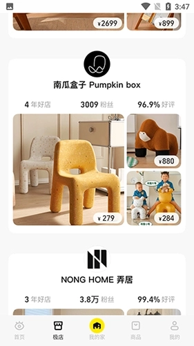 3、点击极店能够查看家居装修类店铺,挑选购买所需的家居物品。