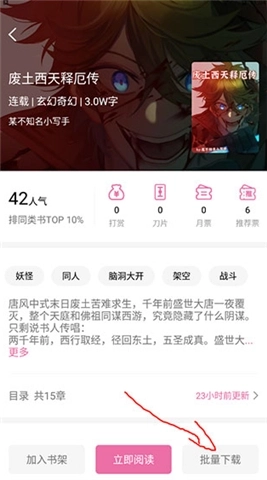 4、支持离线缓存功能,用户只需选择需要的章节,然后点击“批量”按钮,就能不受网络限制,在任何时间、任何地点进行阅读。