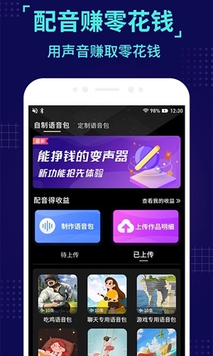 2.多种趣味变声效果任你挑选:爷爷、大叔、小孩、幽灵、机器人……变声操作简单便捷,只需轻轻一点,就能让你瞬间化身自带BGM的潮流达人