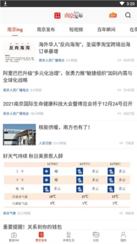2、点击南京发布,可以查看南京最新本地新闻