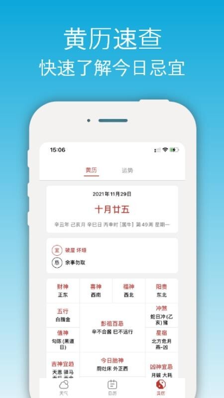 在这里可以掌握到各种今日宜忌,让你可以挑选好日子