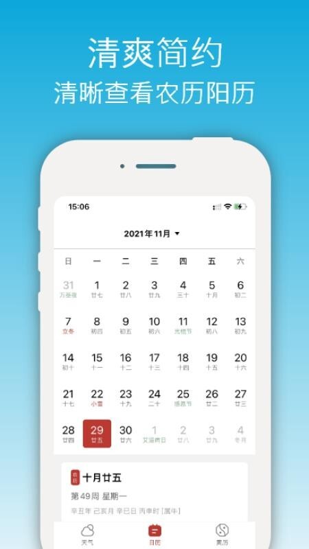 你能够预测未来15天的天气情况,也能随时查看日历呢!并且支持国内各个城市的天气预报查询功能。