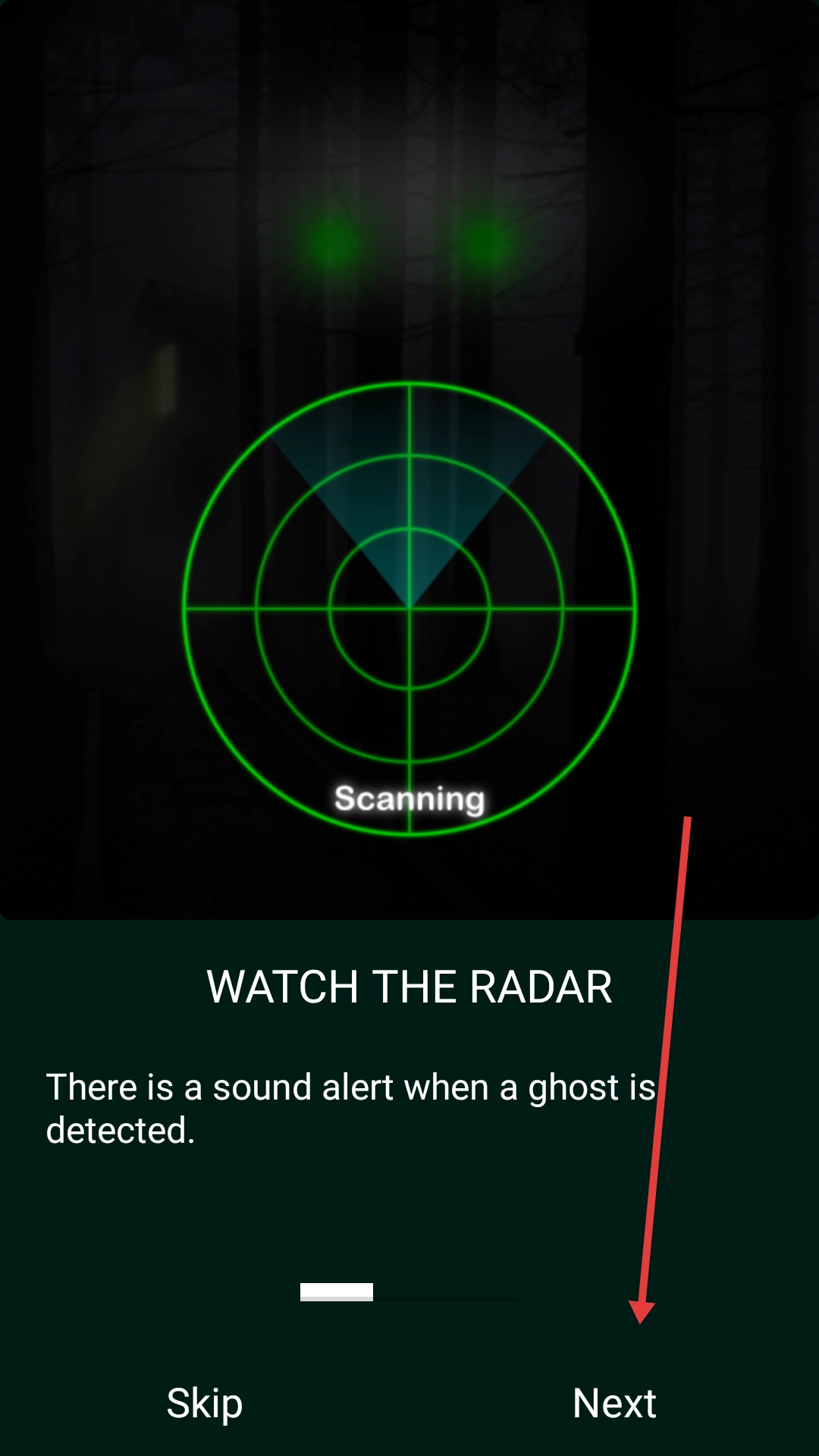 在游戏引导界面留意雷达,当幽灵被探测到的时候会响起声音警报,之后点击【Next】按钮。