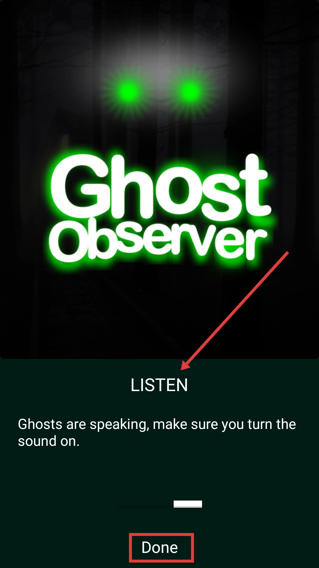请确认开启声音来听取幽灵的声音,之后点击【Done】按钮即可完成引导流程。