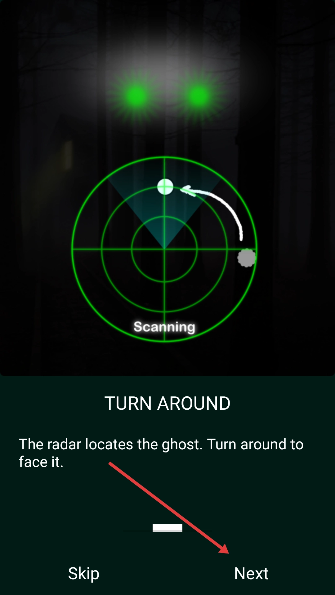 依据雷达确定幽灵的方位,转动身体朝向幽灵,然后点击【Next】按钮。