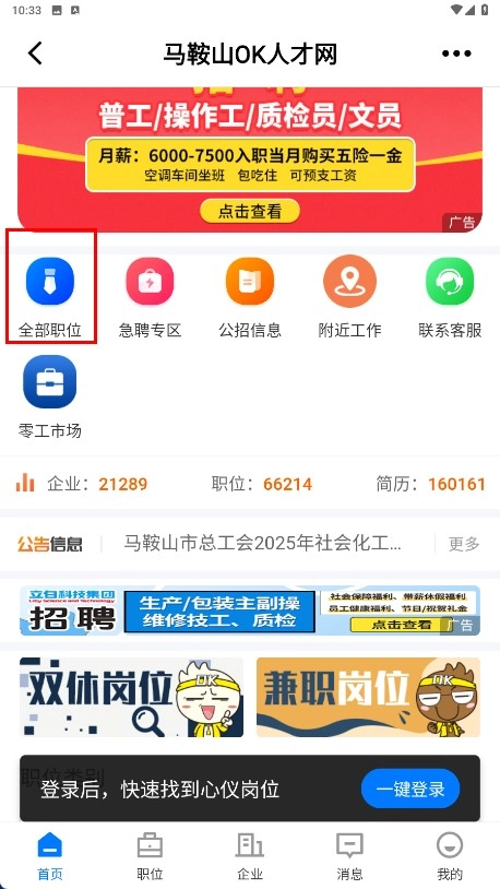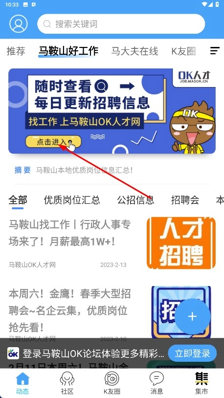点击【马鞍山OK人才网-广告入口】,即可进入招聘平台。