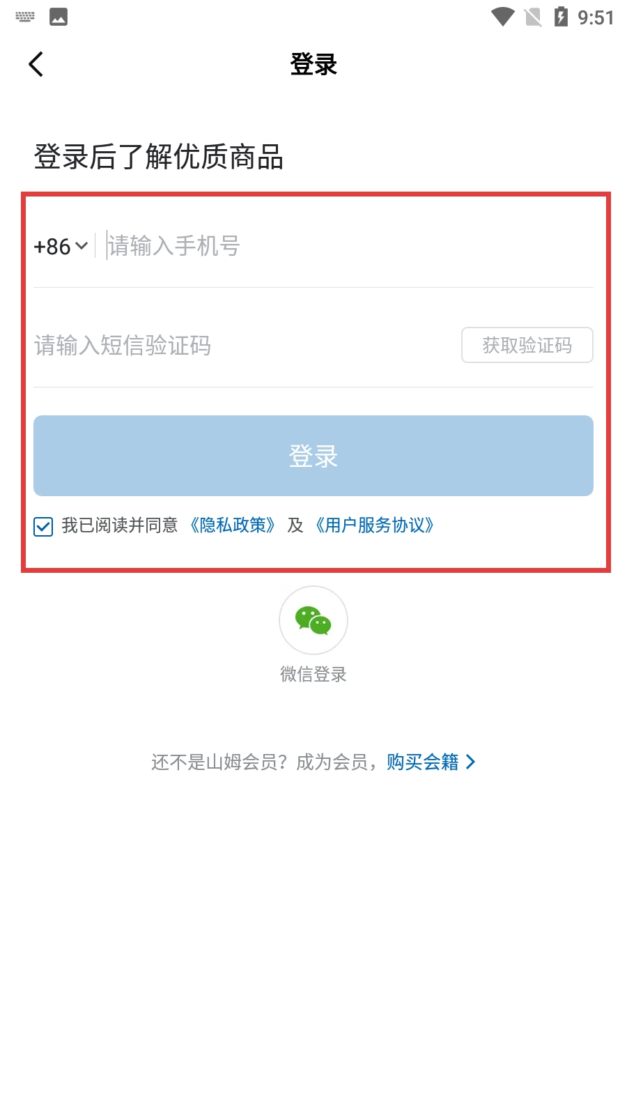 在手机登录界面,先输入手机号,接着获取并填写短信验证码,最后点击【登录】按钮就能完成登录操作。