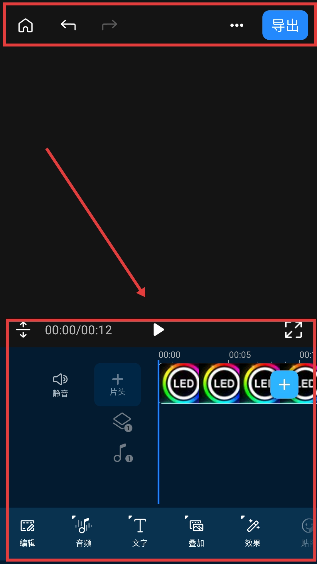 在视频编辑界面中,你可以对视频执行剪辑、添加音频与文字等操作;待所有编辑步骤完成后,点击【导出】按钮,就能将处理好的视频作品导出了。