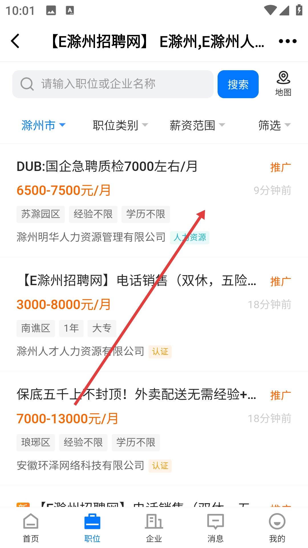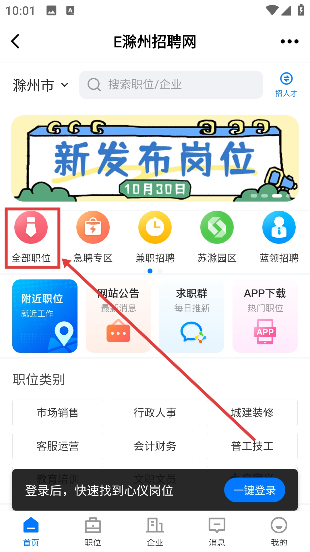 在E滁州招聘网页面点击【全部职位】选项,即可进入职位列表页面。