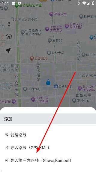 在添加选项列表里点击【导入第三方路线 (Strava,Komoot)】,即可进入第三方连接页面。