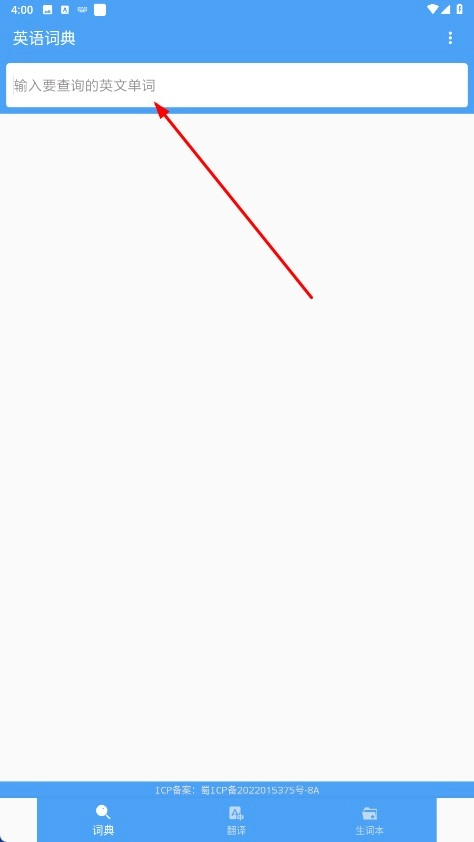 在英语词典页面,点击搜索框输入【需查询的英文单词或关键词】,即可开展单词查询操作。
