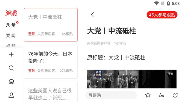 6、依据新闻头条,可进行文章阅读或视频观看。