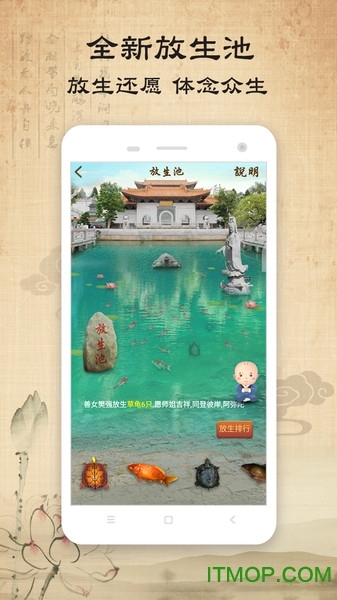 1、全新放生池:新增的放生系统,能让您借由放生实现还愿,感受众生。