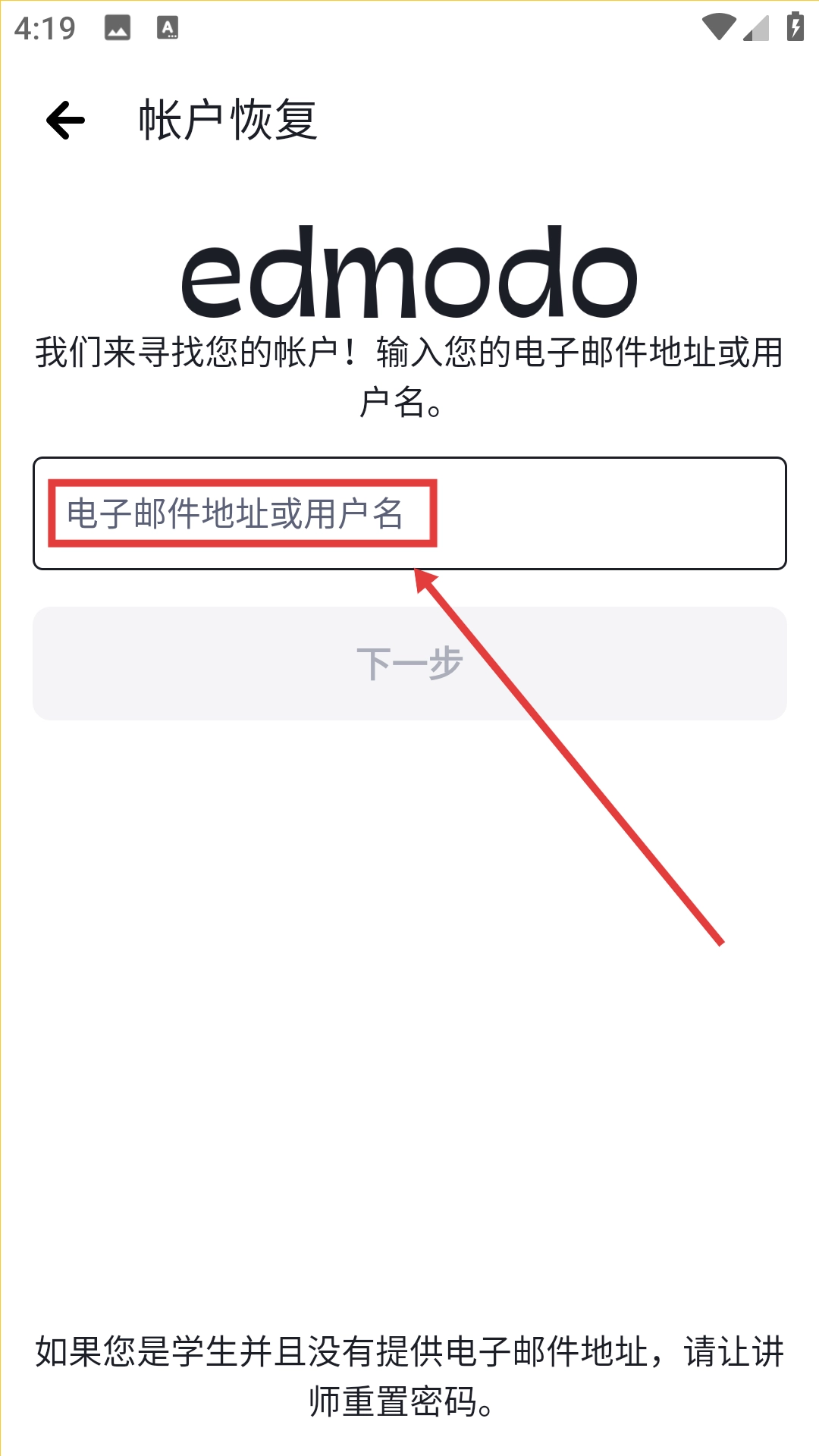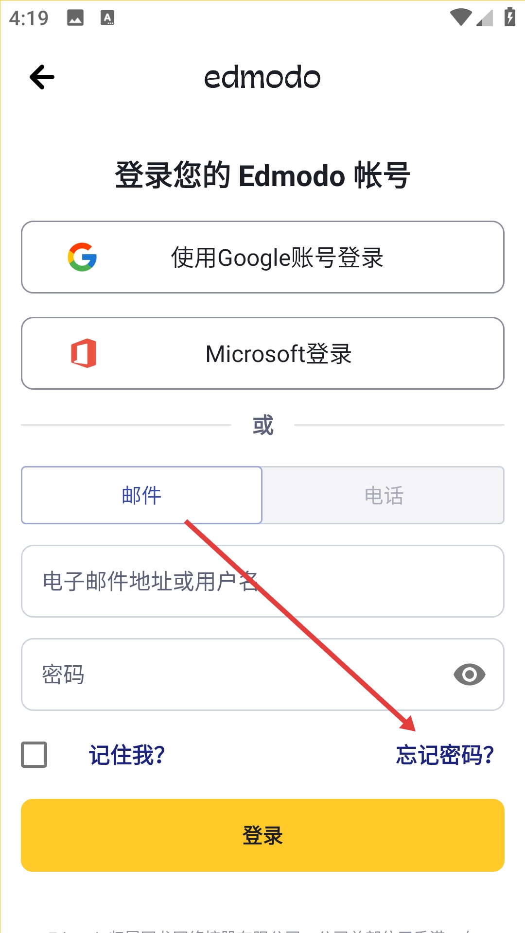 点击“已有帐号?点击这里登录”的链接,即可进入Edmodo的账号登录界面。