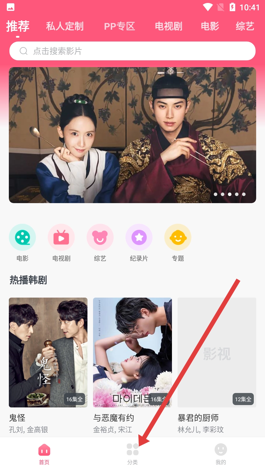 在分类页面点击【电视剧】选项,即可进入电视剧分类界面。