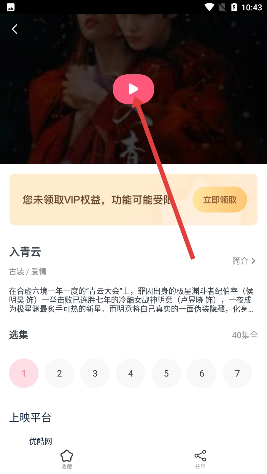 在剧集详情页点击播放按钮,就能开始观看《入青云》这部剧啦。
