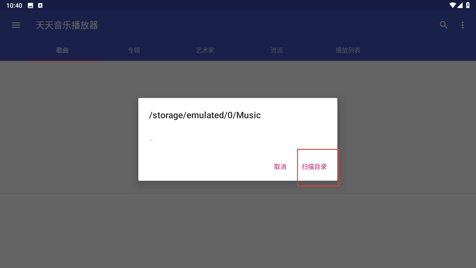 在窗口中点击【扫描目录】功能按钮,即可启动音乐文件的扫描操作。