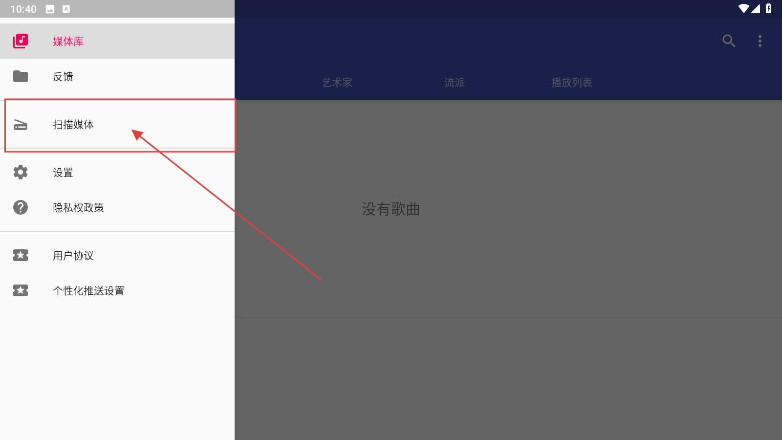 在侧边栏找到【扫描媒体-功能选项】并点击,随即会弹出扫描目录窗口。