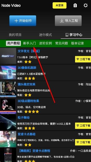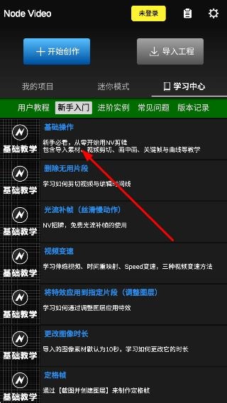 2、进入学习中心页面后,找到并点击【新手入门】分类,浏览该分类下包含的教程内容。