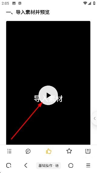 进入教程详情页面后,点击播放按钮即可观看教程内容,比如“导入素材”这类教程,借此学习视频创作的基础操作。