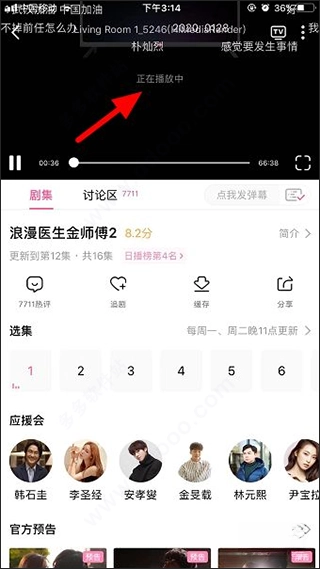 当屏幕上显示“正在播放中”的提示时,意味着韩小圈已成功投屏至电视。
