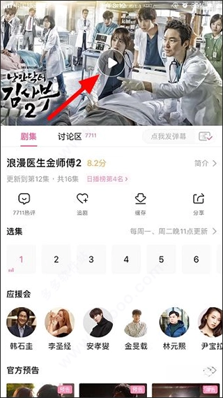 点击韩剧名称进入播放页面,随后点击“播放”按钮即可启动视频播放。