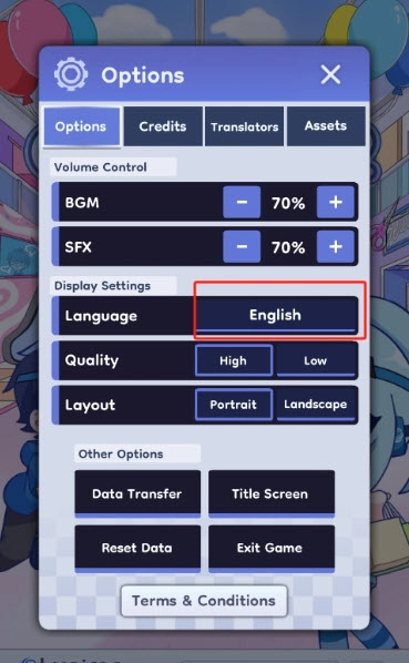 2. 在设置界面中,找到Options(选项)栏下的Language(语言)选项,当前显示为English(英语),点击进入;