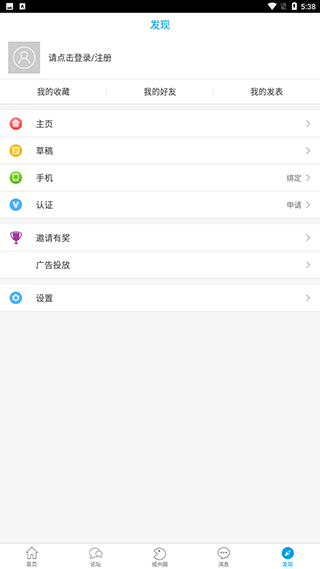 3、点击“我的”,便能查看自己账号的收藏、好友以及所发贴子等相关信息。