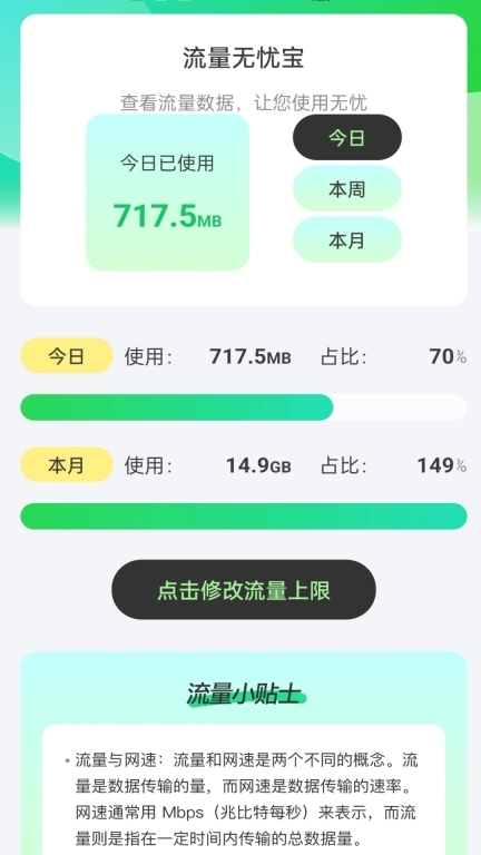 3、流量限制与提醒:一旦流量使用量达到预先设定的限额,软件便会自动向用户发出提醒,以防因流量超出限制而产生额外的不必要费用。