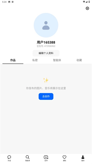 4、最后还能够在我的页面中查看个人作品、智能体和收藏等。