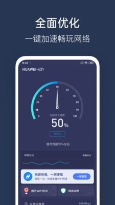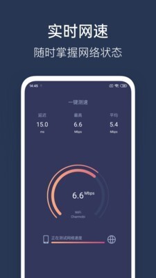 1. 安装于手机,能随时对网络速度进行优化与测试。