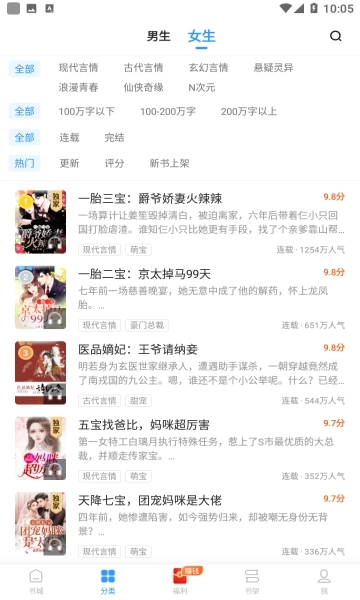 2、书架分类,每本小说都有相应的分类,用户在上面可以找到自己想要观看的小说。