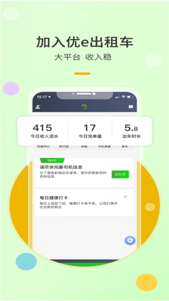 优e出租司机是专门为出租车司机打造的应用,它操作简便,平台也安全可靠。