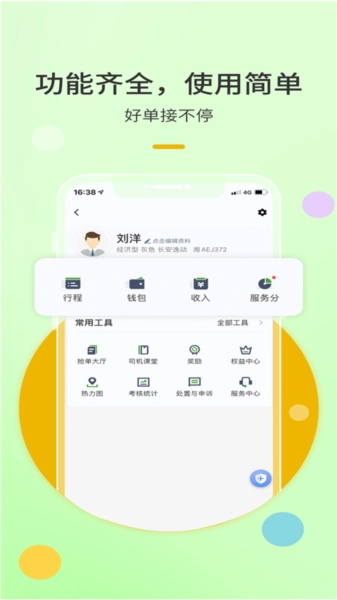 订单来源稳定,除了常规订单外还有更多网约车订单,再加上多种奖励活动,能有效为出租车主增加收入,真正实现多劳多得。