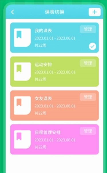 支持免费显示多个课程表,用户能随时切换查看自己关注的不同课表。