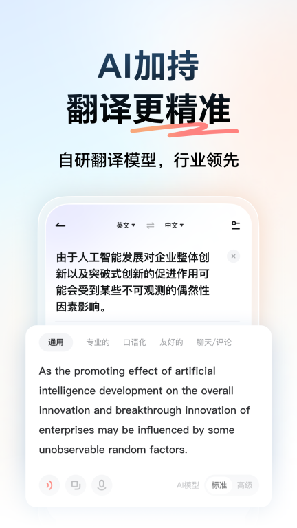 3、采用翻译领域最前沿NMT技术,翻译结果更精准、更流畅。