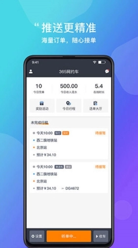 365约车车主端是广大司机日常接单出行的必备服务平台。平台操作简单易用,提供贴心的一站式服务,让司机能够安心接单。凭借良好的口碑支持和在顺风车领域的优势地位,司机在这里可以获得更多订单选择和更优质的订单资源。这是不容错过的机会,欢迎加入365约车车主端,体验高效便捷的接单服务!